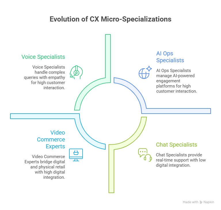 The CX ecosystem is evolving rapidly. Traditional customer service roles are being replaced by micro-specializations focused on individual digital touchpoints.